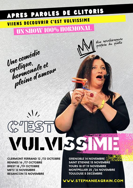 Après PAROLES DE CLITORIS, Stéphanie revient avec C'EST VULVISSIME, un spectacle autobiographique, intime et percutant, sélectionné deux fois aux Printemps du Rire de Toulouse.